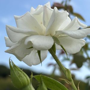 9/21公園墓地に、お墓参り 秋バラでしょうか🌹 色とりどりのバラが咲き始めてました 残念ながら、ネームプレートがないので、ほとんど名前がわかりません ①青い空と白いバラ🩵🤍 ②ダブルデライト? ③GDルイーズ (ネームプレートが付いてました)👍 ④ピンク色のバラ🩷 ⑤ エンチャンティッドピース ? 美味しそうな色のバラです 詳しい方、教えてください