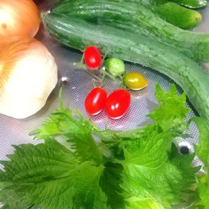 今日は、午前真夏日、午後雷雨暴風大荒れでしたので、今頃になって野菜パトロール。 🍅ショック‼️ ミニトマト純あまが、茎ごと落下していました。 犯人は? こんなイタズラもうごめんです! その他… 家庭菜園でとれた🥔じゃがいも(男爵とアンデスレッド)、🧅玉ねぎ、🍆なす、🫑ピーマン、🥒きゅうり、🍃大葉。