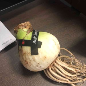 マジックアマリリス。 水も土もいらなくて、置いておくだけでアマリリスが咲くらしい。 すごく楽しみ。