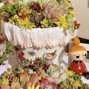楽しい寄せ植え🍀 多肉さんとの遊ぶ約束は 何よりも 優先になってしまいます (◦'︶'◦)♬.。💕🌱 トワさんのおうち🏠 どんぐりトトロ💛 何年経っても綺麗なまま✨✨ ありがとう〜(ღ′◡︎‵)