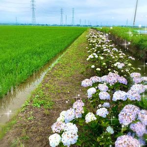 今朝は🌞 昨夜、夜中のドドーンって凄い音に「何!😳」 流れ星☄️だったんですって!⁉️ ビックリ😱😳 旦那さんが雷⚡️だろう?って・・ そういえば一度きりだったし〜😆 picはこの前、用事ついでに久しぶりに🐶お散歩行った 広ーい私の北海道〜🙌🏻 お天気悪かったけど紫陽花もありました🎵