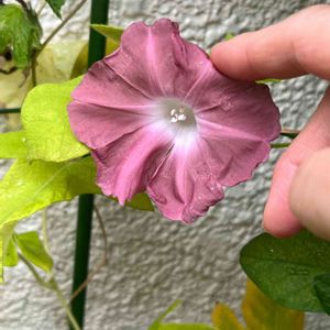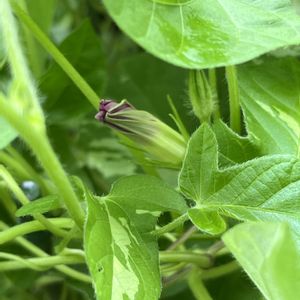 朝顔✨団十郎 ひとつ目開 うう〜ん(⸝ᵕᴗᵕ⸝⸝)この上品な色に憧れて出会えた時に勢いでお迎えして良かったです 昼に思い出し慌てて見に行くと半分垂れていました😭 指で持ち上げなんとか咲いている風に(笑) 蕾が育たず終わってしまうかと心配していたので良かった💦