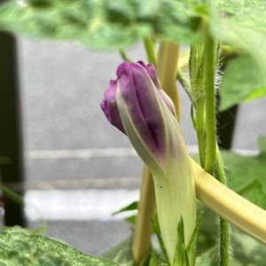 ありゃ😅今年の初咲き朝顔 富士の紫 知らぬ間に咲いていました 気がついたのが夕方で残念💦 2年前くらいにお迎えした朝顔で種を保存しておいたものを蒔きました 同じ鉢に一緒に色違いの「富士の紅」も蒔きました 蕾はどっちかな〜