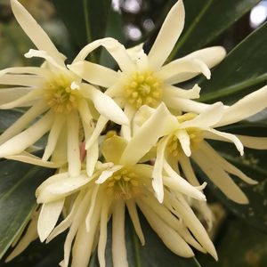 Flower of Shikimi 🌼🌿🌤️😌 シキビ(シキミ)の花。間もなくお彼岸、このまま切って墓前へ…。🌼🌿⚰️😆 この当たりでは、シキビと言う。名前の由来は、四季を通して美しい緑を保つので、四季美=シキミ・シキビとなるらしい…。🤔👍 墓前の花代が結構するので、生前、親父がシキビの木を植えた。お彼岸に、その枝を切って、両親の眠る墓前へ…。親父も、さぞかし喜ぶだろう…。ヨロシコ❗ 👍👍🌼🌼🌿🌿✂️✂️⚰️⚰️🙇🙇👻👻