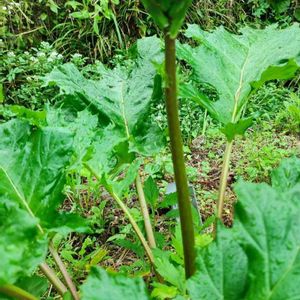 💚アカンサスモリス(キツネノマゴ科)別名 葉アザミ 🌱常緑のツヤツヤとした大きな葉が目を引きます 初夏には大きく伸びた茎に緑紫の花を付け、壮観(アザミとは関係ナシ) ー昨日の慶沢園(元住友家本邸庭園)でー