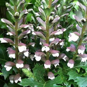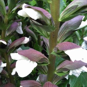 今日関東甲信は梅雨に入りました☔️お出かけ先のアカンサスモリス、沢山咲いています。かっこ良くてとっても好きですが大き過ぎてお迎え出来ませんので眺めるだけ😊❣️ ネットから。 アカンサスが濃緑色で光沢のある大きな葉を広げて、雄大な花穂を伸ばした姿には、力強い存在感があり、花壇のフォーカルポイントとして人目を引きつけます。草丈、株張りともに1.5mほどになる大型の宿根草で、ほぼ周年観賞できます。6月から8月に咲く花は、紫色の萼と白い花弁のコントラストが際立ち、開花後も萼は長く残ります。学名のアカンサスは「とげ」の意味があり、花のつけ根の苞に鋭いとげがあることに由来します。