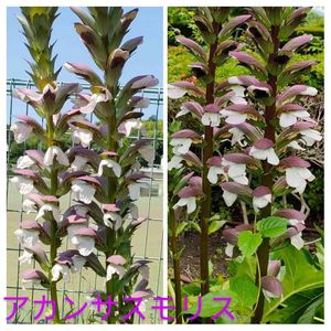 一週間に 二回出会った アカンサスモリス 🏷️今日のお花 知らずに投稿しました😆 白いところがお花 【花は大きな花穂(かすい)につき 白色でガクとホウに包まれます (キツネノマゴ科)】 この3倍以上ある高いお花 下からお花が咲くみたい ⬅️は高松市の公園 ➡️は徳島市の公園