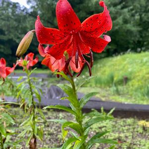 イングリッシュガーデンにて撮影 オニユリさん?でも調べたらオニユリってオレンジ色の花弁ってあるし…カサブランカさんかなぁ🤔 シャンデリアリリー・レッドベルベットさんでした🎶教えていただきありがとうございました😆