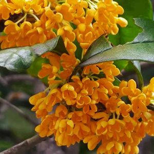 【キンモクセイ】 家の窓からいい香りが (*´▽`*)~🎵 花一つひとつは小さいですが、まとまって咲き誇り香っています。 やっとキンモクセイの時期になりました