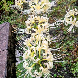 10/1 17:00 雨上がり‼️気温は20℃‼️😄 彼岸花‼️白花曼珠沙華‼️🤗 今日は凉しいけど、明日は28℃予想でーす‼️😅 (人気の投稿にのりました‼️🤗 10/2 頃 ありがとうございます。✌️🐶)