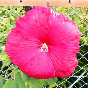 アメリカフヨウ 🌺 直径25cm近いです‼️😲 でかっ‼️😄 まあるいうちわみたい……😅 (7月下旬、早朝の通勤途中にて。) (人気の投稿にのりました。😉 8/20頃。 ありがとうございます‼️😅)