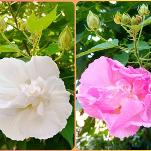 酔芙蓉‼️🤗(9/10 撮影) ⬅️ 朝6:20 ➡️ 夕方17:10 同じ木の、同じ花です。😄 見事に色が変わりました‼️😲✌️ (人気の投稿にのりました。😉 9/16頃。 ありがとうございます‼️😅)