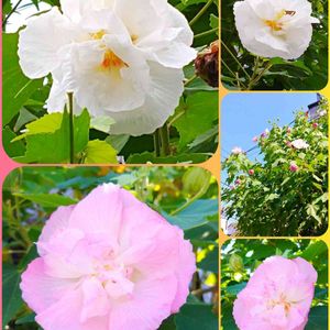 酔芙蓉‼️🤗 上は朝6時半頃で、下は昼1時半頃です。😉 (同じ日ではありませんが、同じ木です。🐶) (人気の投稿にのりました。😉 9/27頃。 ありがとうございます‼️😅)
