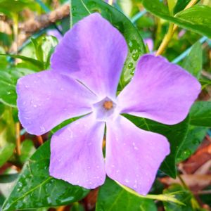 おはようございます‼️🤗 朝6:40、職場の駐車場にて。☺️ 雨上がりのツルニチニチソウ、 いっぱい咲いてます‼️😆 (気温は14℃😉) 🔶 機種変更前の最終投稿です。🐶 (人気の投稿にのりました‼️🤗 4/16 頃 ありがとうございます。✌️🐶)