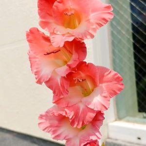 ピンクのグラジオラス‼️😄 7/6 10:25A.M. 動物病院の花壇にて。🐶 気温は32度‼️😅 (人気の投稿にのりました。😉 7/8 頃。 ありがとうございます‼️😅)