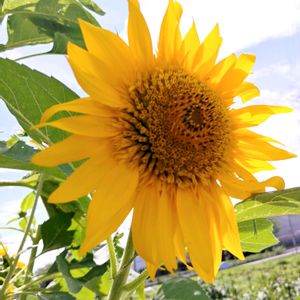 7/19 午後1:30 🌞 気温は33.5度‼️🥵 ひまわりさん🌻暑くても元気いっぱいでーす‼️😄 やっぱり夏🏖はひまわりだね‼️🤗 ひまわりは漢字で向日葵。😆 別名は日輪草、日廻り草、日車、天竺葵、サンフラワー‼️✌️ 花言葉は「私はあなただけを見つめる」「情熱」「憧れ」です。 大輪のひまわりには「偽りの愛」、小輪のひまわりには「高貴」といった花言葉もあります。👩🎓 (人気の投稿にのりました。😉 7/22 頃、 ありがとうございます‼️😅)