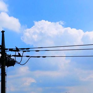 電柱と、白い雲☁と青い空💙👍😆 8/8 13:40 南の空、 立秋(8/7)は過ぎたけど……気温は34度‼️🥵 (ベランダより✌️) 週末、連休も35~37度の予想です…… 😳 (人気の投稿にのりました。😉 8/9 頃、 ありがとうございます‼️😅)