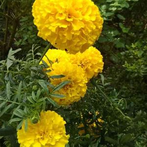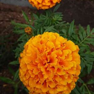 100円で購入した処分品のマリーゴールド🎵 元気に咲いてます(*^▽^)/★*☆♪