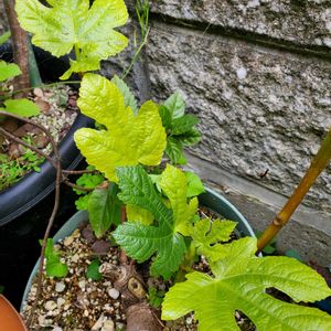 イチジク 斑入り この前UPしたイチジクの斑入り、前回は葉が5~6枚でしたが現在はモサモサになりました。外で育てると成長早いですね(^^)