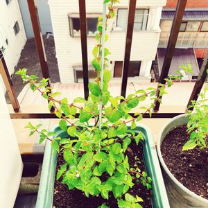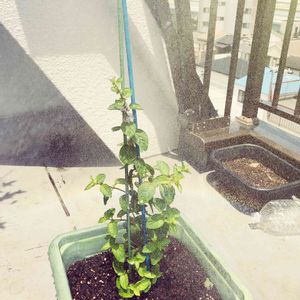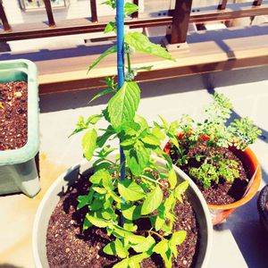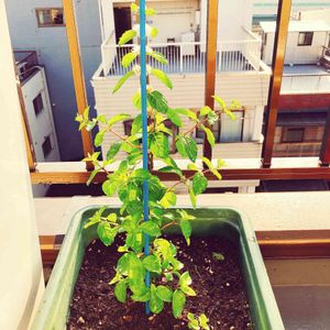 ユーカリを移植 ユーカリとミントの寄せ植えをしていたのですが、ユーカリの元気がなくミントが広がってきたので単独植えにしました