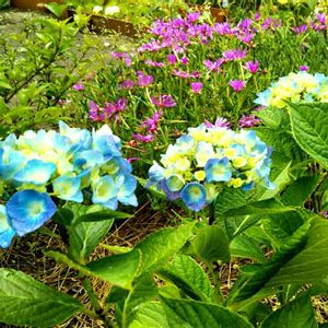 モッコウバラの散り際、小さなお庭の花壇、ハーブガーデンをライトアップ❣️ この写真の中には、あと10種類ほどの植物が!