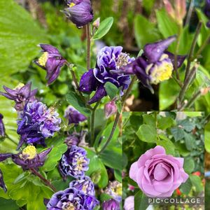 オダマキが復活しました🤗 紫さんたちに しのぶれど を添えて 咲きかけが 1番ですね🤗