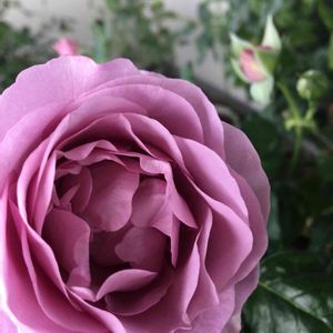 雨露の紫のバラ。名前は「しのぶれど」というそうです。香りも良いです。