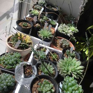 五反田tocの多肉即売会戦利品! 右上のサボテン屋のおじい様が親切に教えてくれて感動でした✨ インスタで知ってた長野にある錦玉園も一度行ってみたいな🐕