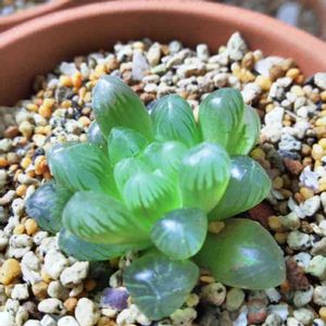 ハオルシア オブツーサ “キサンタゴースト“ 色素変異種です。 夏は緑色です。