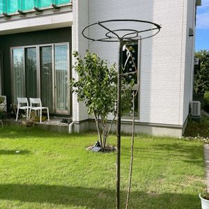 スタンダード仕立ての師匠のバラ大きくなりました🌹😊 枝が上の輪っかから出て順調に育ってます。