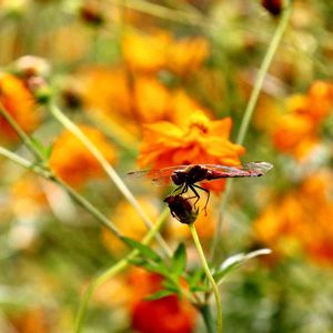 キバナコスモスに赤トンボが… ちょうど撮影できました😊
