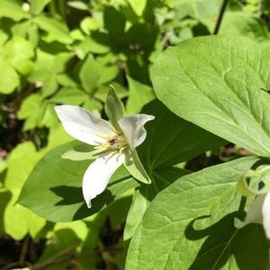 散歩中、初めましての花見つけた!と思い 家に戻ると、庭にも咲いていました😅 pic上は庭、下は散歩道で。 シロバナエンレイソウと教えていただきました✨ 【シロバナエンレイソウ(白花延齢草 )】 ユリ科エンレイソウ属の多年草 別名 ミヤマエンレイソウ(深山延齢草)