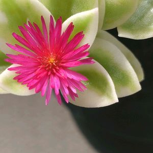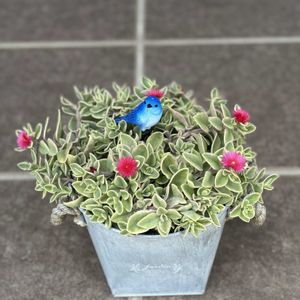 落ちていたニチニチソウ セイロンライティア デュランタを鉢に浮かべ 多肉を縁取りに撮りました