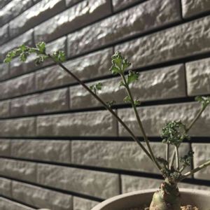 ペラルゴニウム・ミラビレ 細めのカリントウ。 お目覚めです。 シルバーっぽい葉もいい(  ̄▽ ̄)
