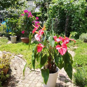 こんにちは😊☀️☁️🌻🌹✨ 今日は晴れ☀ました。でも明日はまた雨☔が少し降るらしいです。その後はしばらく☁曇りとか晴れ☀のようですね。 猛暑にはなってほしくないなあ😅💦💦夏休みも始まって…本格的な夏到来の時期ではありますね、ただコロナが再拡大してるのが困りものです💦💦 こちらは母の日あたりにお迎えしたアンスリウムです👍💕 この器が気に入りアンスリウムがちょうどサイズぴったりでしたのでセットでお迎えしたんです。アンスリウムもいろいろな色があるんですね🥰🎶 アンスリウムといえばこの赤のイメージが強いかな。夏らしい!緑の🌿葉に赤が映えます💕 購入したのはいつものお気に入りの花屋さんです✌️😆✌️