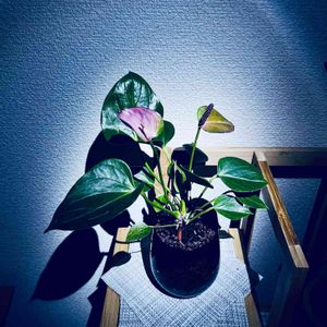 元から落ち着いた感じが出ている、アンスリウムを部屋でライトアップして撮ったら、更に落ち着いた感じになりました😊