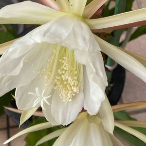 月下美人のそっくりさん、クジャクサボテン🌵 香りは本家の方がさらに良いと聞いていますが、それでもこの香りは嫌味がまったくなく、幸せな気分にしてくれますƪ(˘⌣˘)ʃ