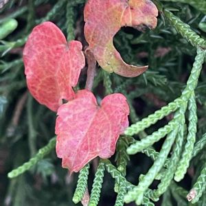 アップルのマークみたいなマメヅタ🍎カイヅカイブキに守られてます🤱