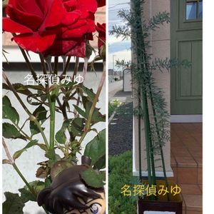 強風が酷い朝です🍃雨は降らない予報〜☁遅番なので、今から自転車で強風に立ち向かいます🚴 3月の合格祝いに頂いた花友さんのミモザが、150cmになりました♡冬は家の中で冬越しなので、背が高くならないよう剪定します🌿 ミニ薔薇さんのフォーエバーで真っ赤な火曜日❤ 🏷真っ赤な火曜日