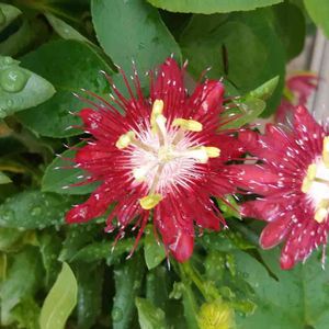 アカバナトケイソウ こちらも温室内です。 真っ赤なトケイソウを初めて見ました。
