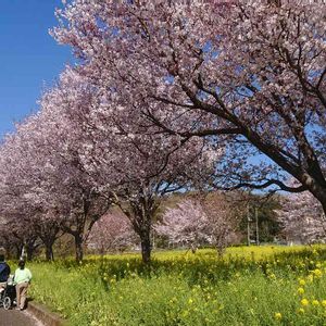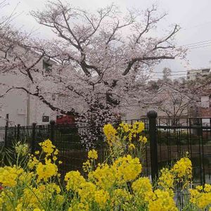 横浜市都筑区川和町駅前にて 青空 桜 菜の花 春の黄金セット♥️
