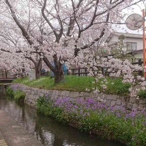 樹によってはまだ蕾が多く残ってるけど花びらがちらりほらりと 水辺とサクラの相性バツグン♥️