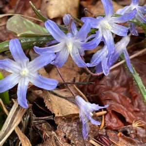 チオノドクサ(キジカクシ科)4/4 原産地 地中海からアジアの球根植物 雪解けとともに咲き始める 去年初めてここで見た花です 今年も咲いていました〜💕 寒さに強い花のようですね