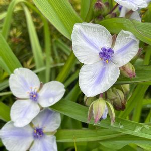 今日のお花 先月のpicから 6/14 ムラサキツユクサ(ツユクサ科) 紫露草の園芸種なのでしょうか?? 白い花弁に紫の筋が入りとても素敵な露草でした〜💕