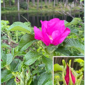 今日のお花 6/14 ハマナス(バラ科) ハマナシとも 森の手前 池辺りに咲く浜梨は花だけでなく 冬芽から実、秋の黄葉まで楽しませてくれます💕 ↘️ 王冠👑の様な蕾も好きです😍