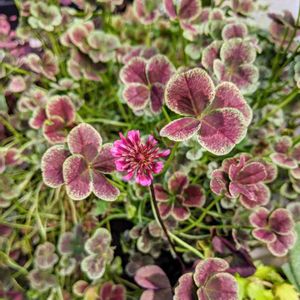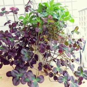 クローバー ティントパープル 寄せ植えにしたら モリモリになって こんな可愛いお花が咲きました🌸 葉っぱと同じ紫ピンク? 紅紫色💜💖💜💕🍀🎶🎶🎶