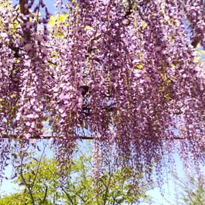 藤の花が満開です お天気がいいので 今日が一番、綺麗とお家の方がおっしゃってました ご近所で、毎年楽しみにしてます 今日は写真を撮らせて下さいと、朝から 私を含めて3人の方が見えたそうです 垂れ下がった藤は ゴージャスです