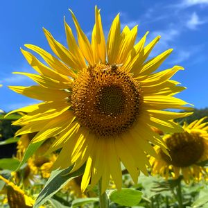 ひまわり柚遊農園から最後に、一際大きな向日葵さん🌻 大きく鮮やかなひまわりさん、元気を分けてもらえるようですね🌻❣️ 今日で文月も終わり。今月も見ていただきありがとうございました😊 素敵な日曜日となりますように❣️