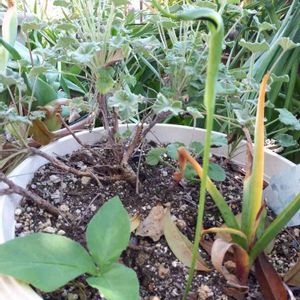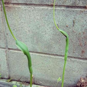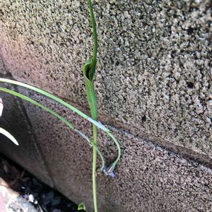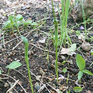 この花(草??)は何者??雑草?? クレマチスの間からニョキニョキと出てきました。 いつの間にか庭のあちらこちらからニョキニョキと。 球根で増えているみたいです。 誰か教えて下さいm(_ _)m
