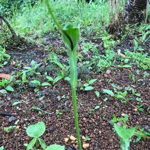 何か出てきて放っておいたら…… ウラシマ草? 植えた覚えはないんだけど……